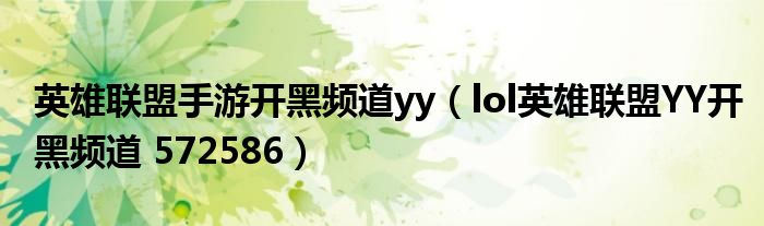 关于英雄联盟手游开黑频道yy,lol英雄联盟YY开黑频道 572586这个很多人还不知道,今天菲菲来为大家解答以上的问题,现在让我们一起来看看吧!