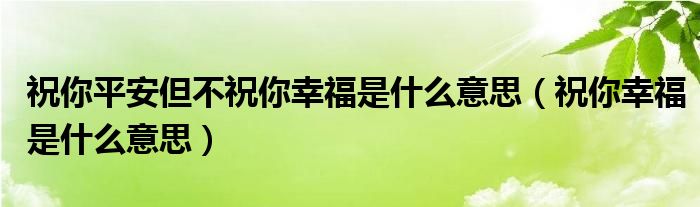 关于祝你平安但不祝你幸福是什么意思,祝你幸福是什么意思这个很多人还不知道,今天菲菲来为大家解答以上的问题,现在让我们一起来看看吧!