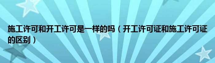 关于施工许可和开工许可是一样的吗,开工许可证和施工许可证的区别这个很多人还不知道,今天菲菲来为大家解答以上的问题,现在让我们一起来看看吧!