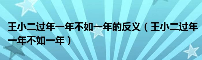 关于王小二过年一年不如一年的反义,王小二过年一年不如一年这个很多人还不知道,今天菲菲来为大家解答以上的问题,现在让我们一起来看看吧!