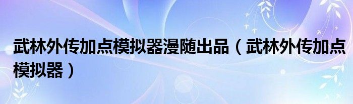 关于武林外传加点模拟器漫随出品,武林外传加点模拟器这个很多人还不知道,今天菲菲来为大家解答以上的问题,现在让我们一起来看看吧!