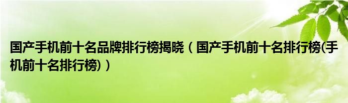 大家好,小常来为大家解答以上问题。国产手机前十名品牌排行榜揭晓,国产手机前十名排行榜(手机前十名排行榜)很多人还不知道,现在让我们一起来看看吧!