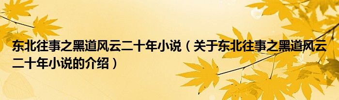 大家好,今天小乐来为大家解答以上的问题。东北往事之黑道风云二十年小说,关于东北往事之黑道风云二十年小说的介绍很多人还不知道,现在让我们一起来看看吧!