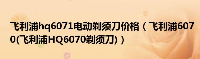 大家好,小常来为大家解答以上问题。飞利浦hq6071电动剃须刀价格,飞利浦6070(飞利浦HQ6070剃须刀)很多人还不知道,现在让我们一起来看看吧!