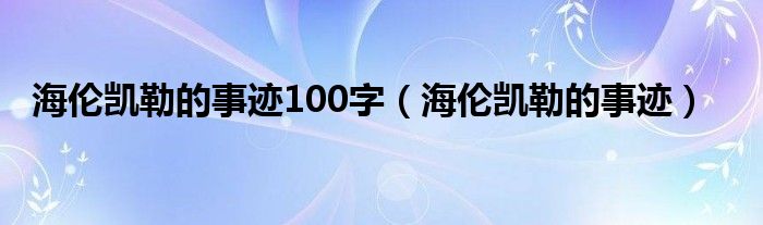 关于海伦凯勒的事迹100字,海伦凯勒的事迹这个很多人还不知道,今天菲菲来为大家解答以上的问题,现在让我们一起来看看吧!