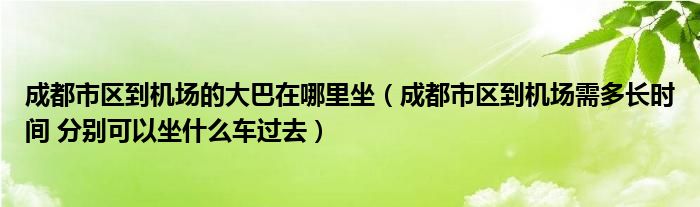 关于成都市区到机场的大巴在哪里坐,成都市区到机场需多长时间 分别可以坐什么车过去这个很多人还不知道,今天菲菲来为大家解答以上的问题,现在让我们一起来看看吧!