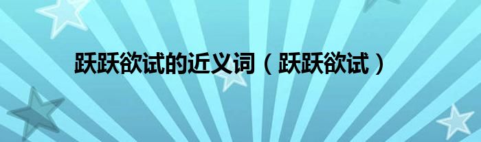 关于跃跃欲试的近义词,跃跃欲试这个很多人还不知道,今天菲菲来为大家解答以上的问题,现在让我们一起来看看吧!