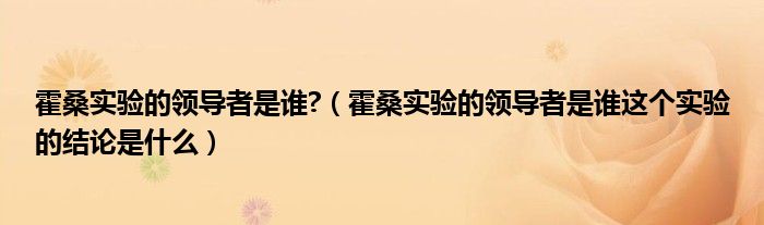 关于霍桑实验的领导者是谁?,霍桑实验的领导者是谁这个实验的结论是什么这个很多人还不知道,今天菲菲来为大家解答以上的问题,现在让我们一起来看看吧!