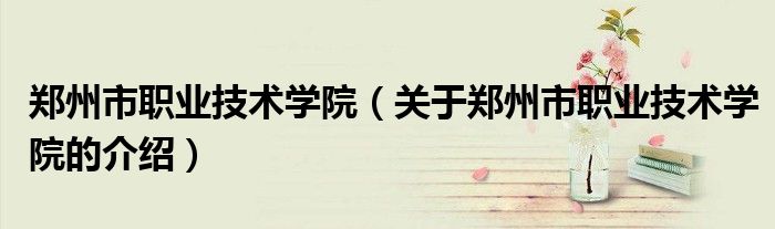 大家好,小都来为大家解答以上的问题。郑州市职业技术学院,关于郑州市职业技术学院的介绍很多人还不知道,现在让我们一起来看看吧!