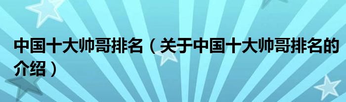 大家好,小都来为大家解答以上的问题。中国十大帅哥排名,关于中国十大帅哥排名的介绍很多人还不知道,现在让我们一起来看看吧!