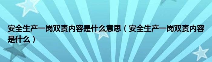 关于安全生产一岗双责内容是什么意思,安全生产一岗双责内容是什么这个很多人还不知道,今天菲菲来为大家解答以上的问题,现在让我们一起来看看吧!