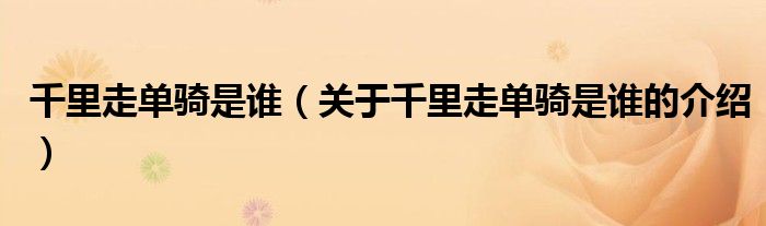 大家好,小都来为大家解答以上的问题。千里走单骑是谁,关于千里走单骑是谁的介绍很多人还不知道,现在让我们一起来看看吧!