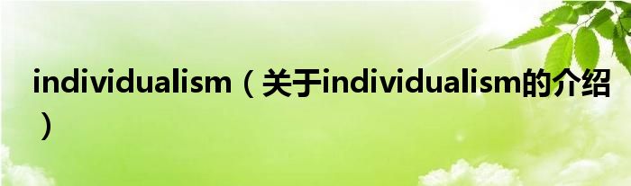 大家好,小都来为大家解答以上的问题。individualism,关于individualism的介绍很多人还不知道,现在让我们一起来看看吧!