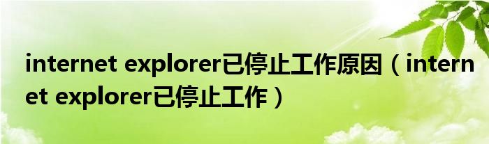 大家好,小飞来为大家解答以上问题,internet explorer已停止工作原因,internet explorer已停止工作很多人还不知道,现在让我们一起来看看吧!