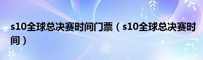 s10全球总决赛时间门票,s10全球总决赛时间很多人还不知道,乐乐来为大家解答以上问题,现在让我们一起来看看吧!