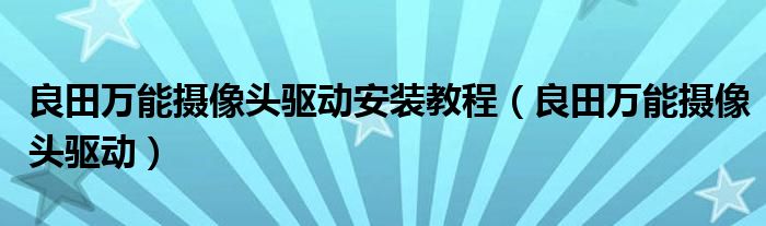 良田万能摄像头驱动安装教程,良田万能摄像头驱动这个很多人还不知道,小飞来为大家解答以上的问题。现在让我们一起来看看吧!