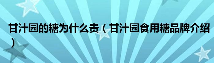 大家好,小源来为大家解答以上问题。甘汁园的糖为什么贵,甘汁园食用糖品牌介绍很多人还不知道,现在让我们一起来看看吧!
