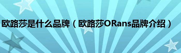 大家好,小源来为大家解答以上问题。欧路莎是什么品牌,欧路莎ORans品牌介绍很多人还不知道,现在让我们一起来看看吧!