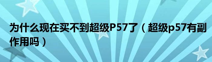 为什么现在买不到超级P57了,超级p57有副作用吗很多人还不知道,乐乐来为大家解答以上问题,现在让我们一起来看看吧!