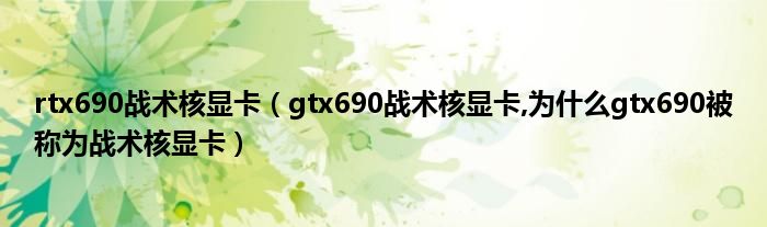 大家好,小常来为大家解答以上问题。rtx690战术核显卡,gtx690战术核显卡,为什么gtx690被称为战术核显卡很多人还不知道,现在让我们一起来看看吧!