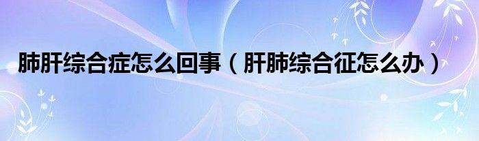 大家好,linda来为大家解答以上的问题。肺肝综合症怎么回事,肝肺综合征怎么办很多人还不知道,现在让我们一起来看看吧!