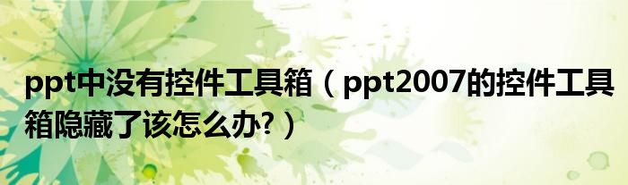 大家好,今天小悦来为大家解答以上问题。ppt中没有控件工具箱,ppt2007的控件工具箱隐藏了该怎么办?很多人还不知道,现在让我们一起来看看吧!
