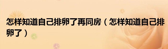 大家好,linda来为大家解答以上的问题。怎样知道自己排卵了再同房,怎样知道自己排卵了很多人还不知道,现在让我们一起来看看吧!