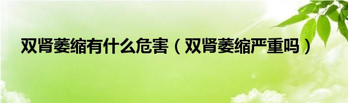 大家好,linda来为大家解答以上的问题。双肾萎缩有什么危害,双肾萎缩严重吗很多人还不知道,现在让我们一起来看看吧!