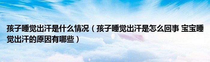 大家好,linda来为大家解答以上的问题。孩子睡觉出汗是什么情况,孩子睡觉出汗是怎么回事 宝宝睡觉出汗的原因有哪些很多人还不知道,现在让我们一起来看看吧!