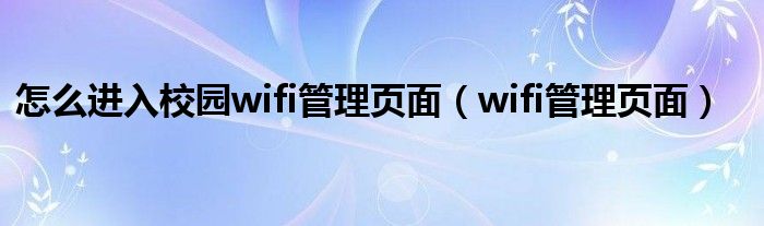 大家好,小晋来为大家解答以下问题,关于怎么进入校园wifi管理页面,wifi管理页面很多人还不知道,今天让我们一起来看看吧!