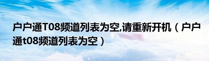大家好,小晋来为大家解答以下问题,关于户户通T08频道列表为空,请重新开机,户户通t08频道列表为空很多人还不知道,今天让我们一起来看看吧!