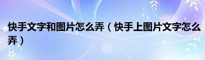 大家好,小晋来为大家解答以下问题,关于快手文字和图片怎么弄,快手上图片文字怎么弄很多人还不知道,今天让我们一起来看看吧!