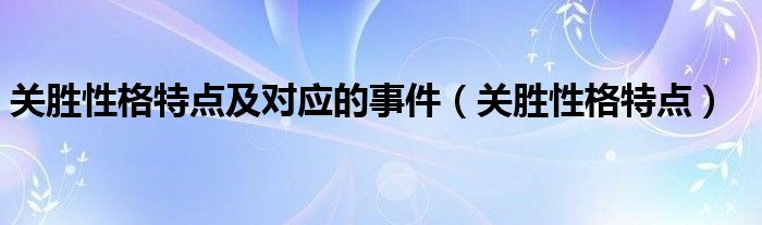 大家好,小晋来为大家解答以下问题,关于关胜性格特点及对应的事件,关胜性格特点很多人还不知道,今天让我们一起来看看吧!