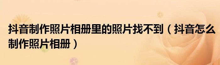 大家好,小晋来为大家解答以下问题,关于抖音制作照片相册里的照片找不到,抖音怎么制作照片相册很多人还不知道,今天让我们一起来看看吧!