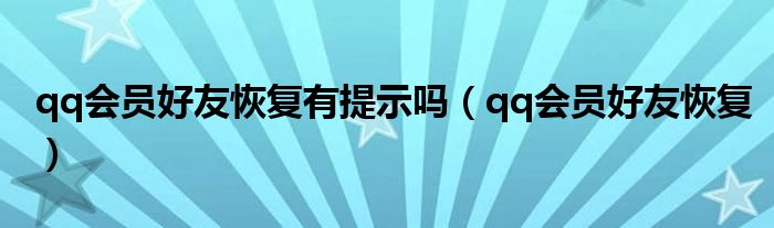 大家好,小晋来为大家解答以下问题,关于qq会员好友恢复有提示吗,qq会员好友恢复很多人还不知道,今天让我们一起来看看吧!