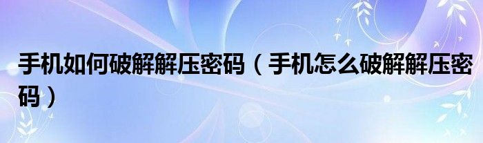 大家好,小晋来为大家解答以下问题,关于手机如何破解解压密码,手机怎么破解解压密码很多人还不知道,今天让我们一起来看看吧!