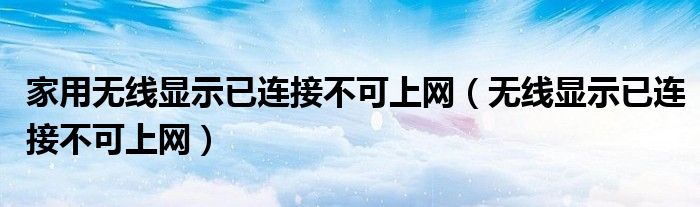大家好,小晋来为大家解答以下问题,关于家用无线显示已连接不可上网,无线显示已连接不可上网很多人还不知道,今天让我们一起来看看吧!