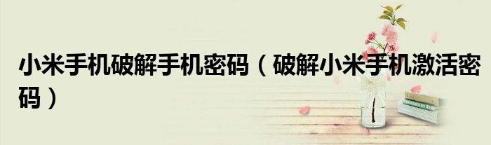 大家好,小晋来为大家解答以下问题,关于小米手机破解手机密码,破解小米手机激活密码很多人还不知道,今天让我们一起来看看吧!