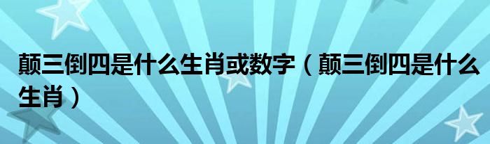 大家好,小晋来为大家解答以下问题,关于颠三倒四是什么生肖或数字,颠三倒四是什么生肖很多人还不知道,今天让我们一起来看看吧!