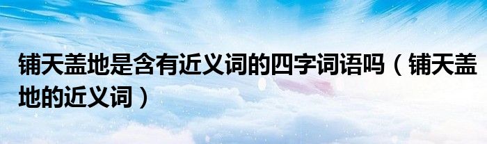 大家好,小晋来为大家解答以下问题,关于铺天盖地是含有近义词的四字词语吗,铺天盖地的近义词很多人还不知道,今天让我们一起来看看吧!