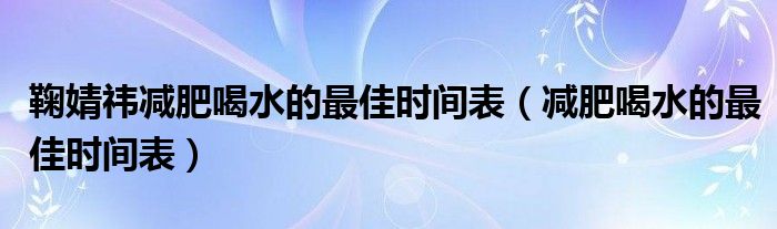 大家好,linda来为大家解答以上的问题。鞠婧祎减肥喝水的最佳时间表,减肥喝水的最佳时间表很多人还不知道,现在让我们一起来看看吧!