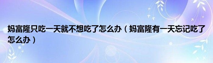 大家好,linda来为大家解答以上的问题。妈富隆只吃一天就不想吃了怎么办,妈富隆有一天忘记吃了怎么办很多人还不知道,现在让我们一起来看看吧!