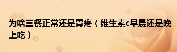大家好,linda来为大家解答以上的问题。为啥三餐正常还是胃疼,维生素c早晨还是晚上吃很多人还不知道,现在让我们一起来看看吧!
