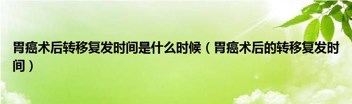 1、胃癌术后转移复发的时间是根据你的病理类型、手术清除的程度、最后一个淋巴结的转移情况以及患者术前的一般情况来决定的。