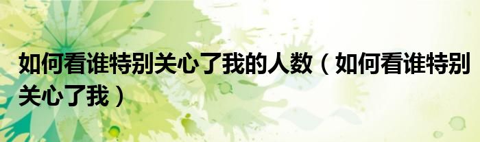 大家好,小晋来为大家解答以下问题,关于如何看谁特别关心了我的人数,如何看谁特别关心了我很多人还不知道,今天让我们一起来看看吧!