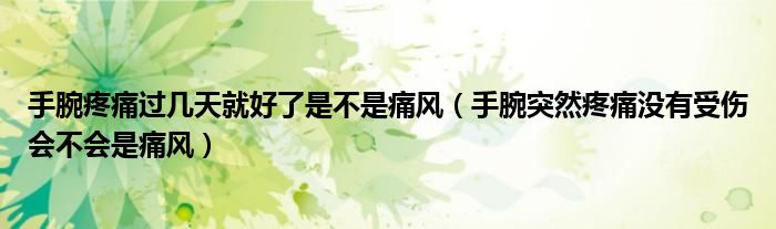 大家好,linda来为大家解答以上的问题。手腕疼痛过几天就好了是不是痛风,手腕突然疼痛没有受伤会不会是痛风很多人还不知道,现在让我们一起来看看吧!