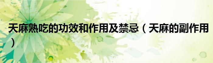 大家好,linda来为大家解答以上的问题。天麻熟吃的功效和作用及禁忌,天麻的副作用很多人还不知道,现在让我们一起来看看吧!