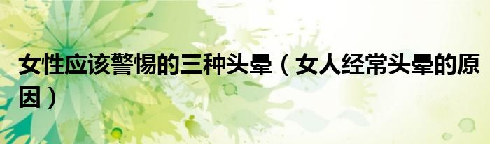 大家好,linda来为大家解答以上的问题。女性应该警惕的三种头晕,女人经常头晕的原因很多人还不知道,现在让我们一起来看看吧!