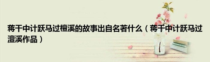 关于蒋干中计跃马过檀溪的故事出自名著什么,蒋干中计跃马过澶溪作品这个很多人还不知道,今天菲菲来为大家解答以上的问题,现在让我们一起来看看吧!