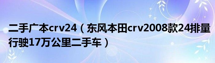 大家好,小常来为大家解答以下问题,对于二手广本crv24,东风本田crv2008款24排量行驶17万公里二手车很多人还不知道,今天让我们一起来看看吧!